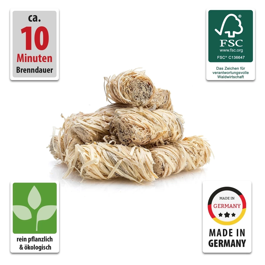 Deze houtwol aanmaak wokkels combineren een lange brandduur van circa 10 minuten met een krachtige, rookvrije ontsteking. Ze zijn bijzonder efficiënt, laten geen roet of as achter en zorgen voor een snelle, schone start van elk vuur.