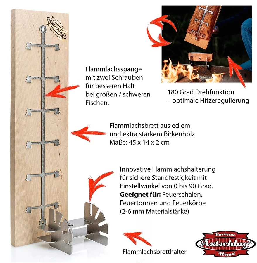 De Axtschlag Zalmrookplank is extra sterk (50 cm x 14 cm x 2 cm) en duurzaam. Met de verbinding van rvs kan de afstand tot de warmtebron veilig worden aangepast en met de geïntegreerde draaifunctie is de plank ook makkelijk te draaien. Het Berkenhout is FSC-gecertificeerd en volledig vrij van chemische toevoegingen.