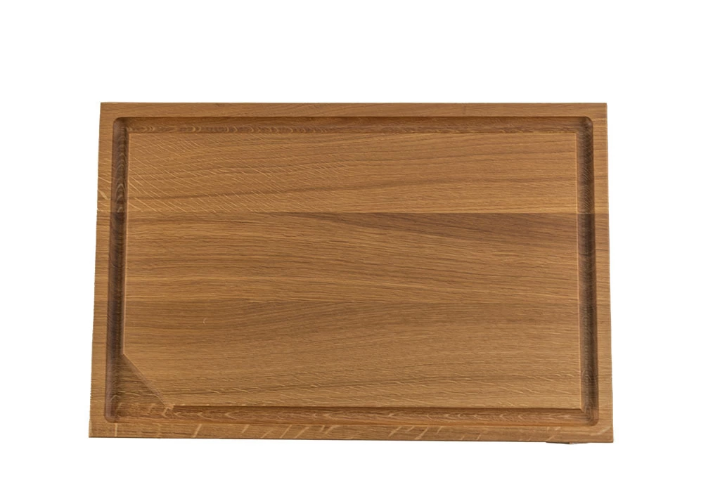 Baas Boards Snijplank L Eiken (49x29x4cm). Schitterende snijplank van de hoogste kwaliteit. Snijden op deze royale snijplank is een feestje, mede ook door de diepe sapgeul, zodat tijdens het snijden het vocht goed wordt opgevangen. De snijplank is voorzien van anti-slip pootjes zodat de snijplank goed blijft liggen en ook gemakkelijk op te pakken is. De snijplank is gemaakt van Europees eiken, uit duurzaam beheerde bossen.