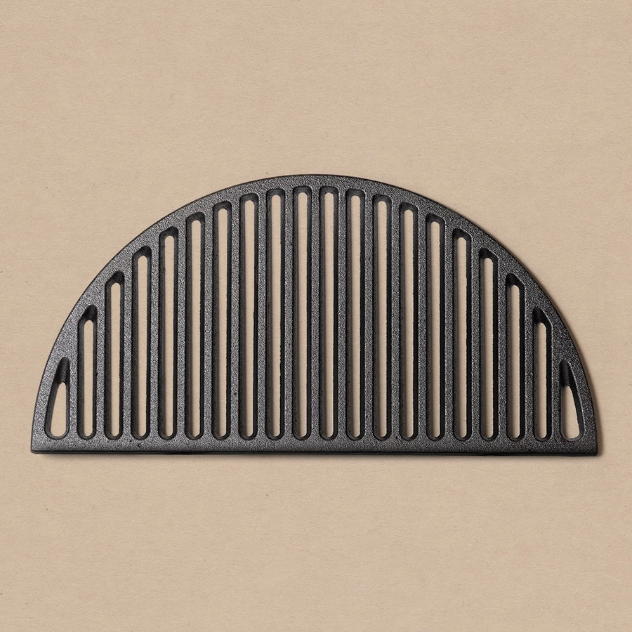 Een halve maan gietijzeren grillrooster voor de Kamado Large van Bestcharcoal.