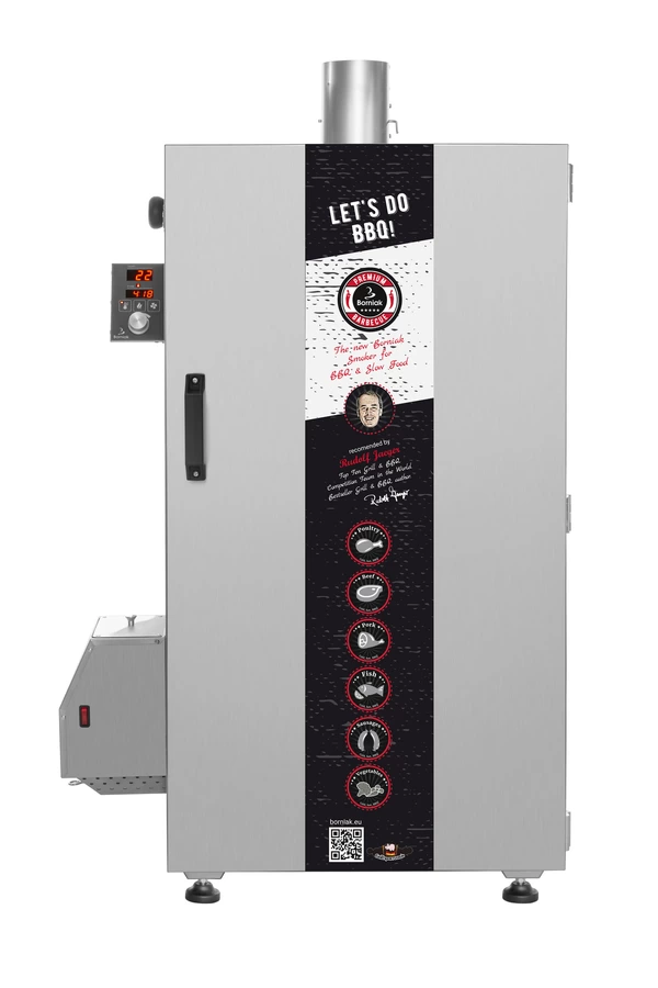 Borniak Rookoven BBDST-150, een professionele rookoven die een maximale temperatuur bereikt van 150°C. In deze rookoven kan tot 20 kg vlees, vis, gevogelte of groenten en fruit gerookt worden.
