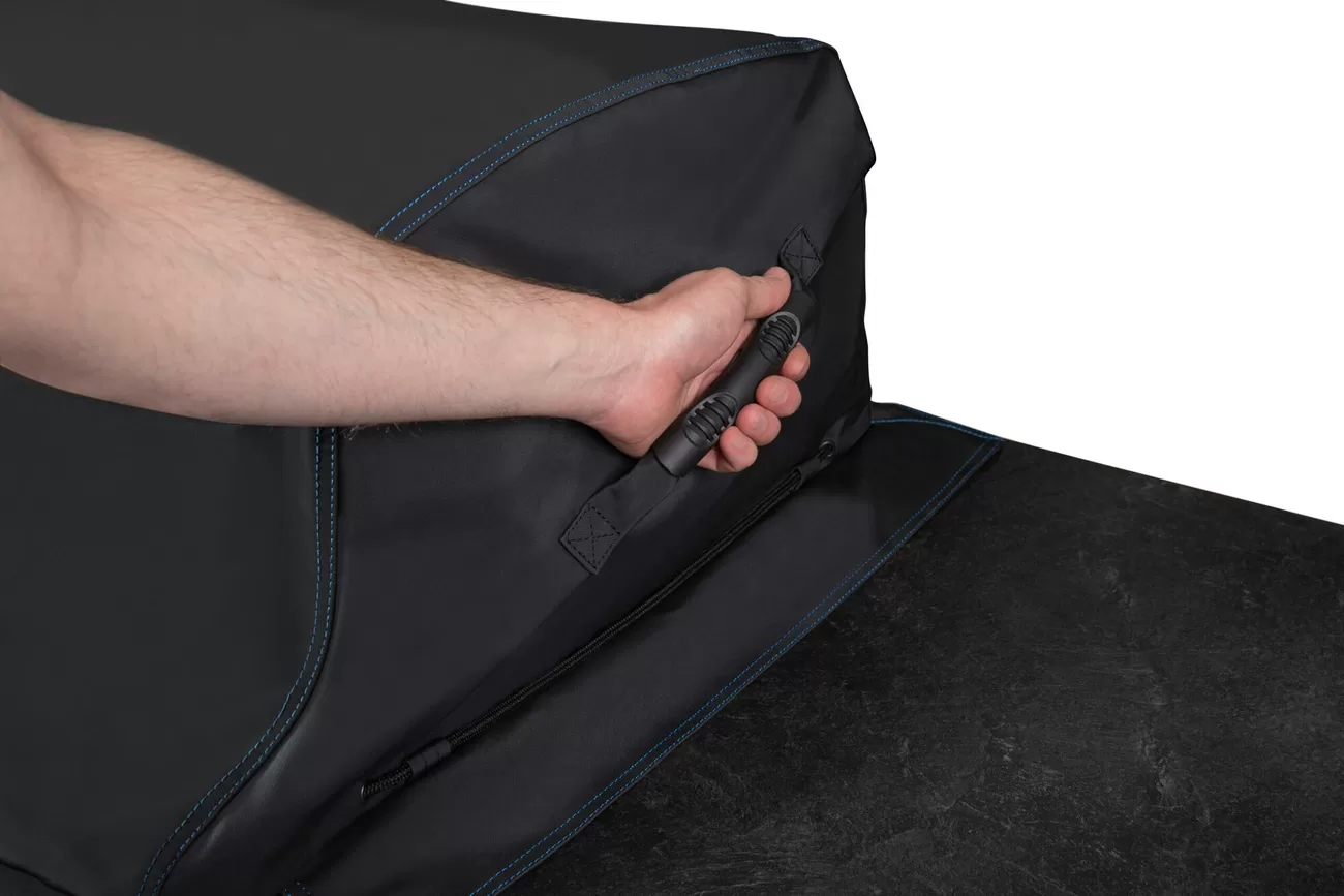 De blauwe naden ronden door dit accent het perfecte design van de premium beschermhoes helemaal af. De gegoten rubberen handgrepen zorgen ervoor dat de hoezen gemakkelijk te verwijderen zijn.