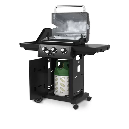 De Broil King™ Royal™ 340 SHADOW is een veelzijdige gasbarbecue, uitgerust met drie roestvrijstalen Dual-Tube™ branders die zorgen voor een krachtige en gelijkmatige warmteverdeling. De barbecue beschikt over omkeerbare, geëmailleerde gietijzeren braadroosters en een chromen warmhoudrooster, ondersteund door het Flav-R-Wave™ warmteverdelingssysteem voor optimale barbecuesmaak. Dankzij de elektronische ontsteking is de barbecue snel en eenvoudig aan te steken.
