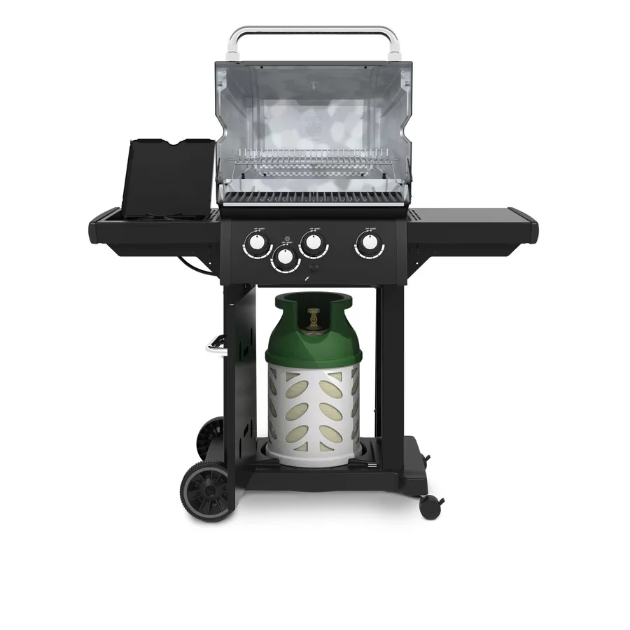 De Broil King Royal 340 Shadow is voorzien van drie rvs branders en een zijbrander.