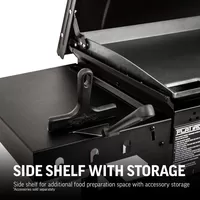 Char-Griller Flat Iron 3 Burner Gas Griddle / Plancha biedt heel veel mogelijkheden voor het buiten koken. De bakplaat heeft drie onafhankelijke hittezones met een zeer krachtige output van 36.000 BTU, zodat er tegelijkertijd meerdere maaltijden op één oppervlak bereid kunnen worden. Ook fijn is de premium look en feel en een handige afsluitbare opbergruimte aan de onderkant voor accessoires.