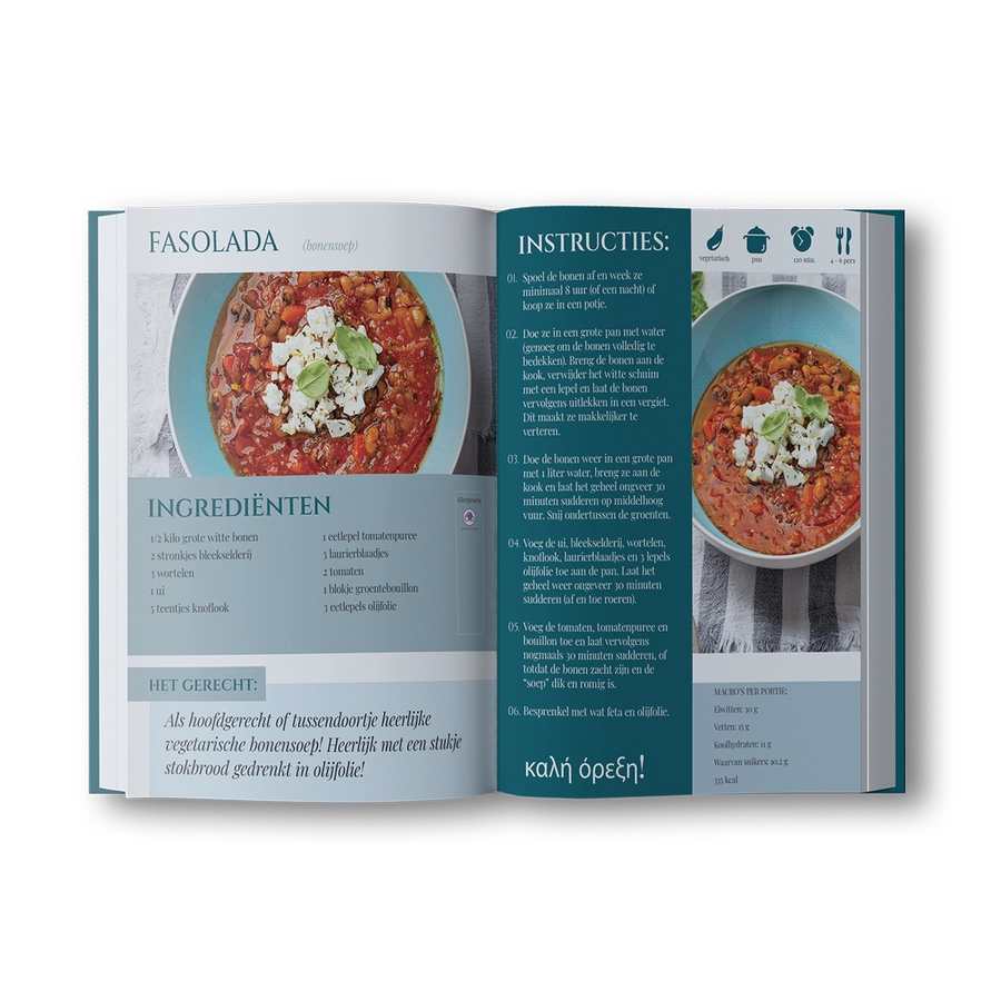 Met 52 authentieke Griekse recepten is dit boek een culinair feest voor iedereen: meer dan de helft is vegetarisch, maar ook vlees- en visliefhebbers vinden volop inspiratie. Elk recept bevat heldere informatie over macro’s, allergenen en andere handige details, waardoor je precies weet wat je op tafel zet.