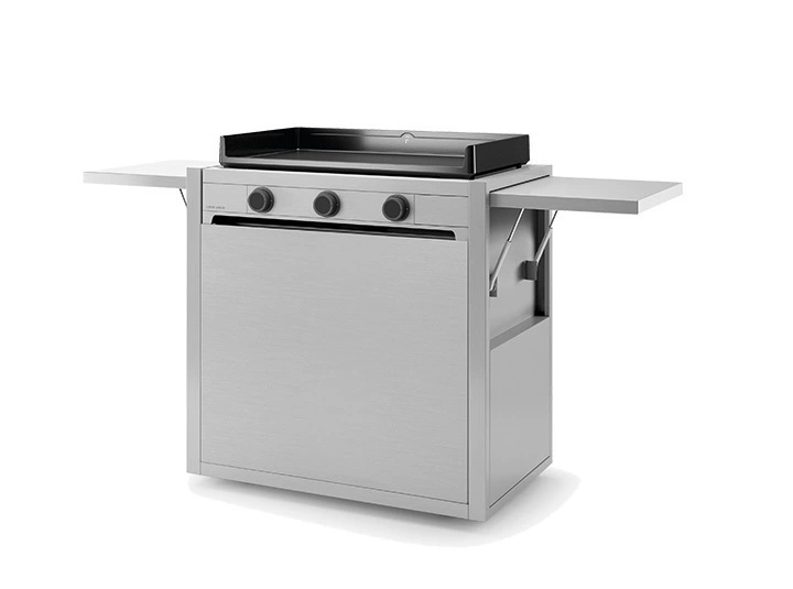 De Modern-trolley is de perfecte, speciaal ontworpen ondersteuning voor uw moderne plancha. Deze zowel stijlvolle als praktische set past naadloos op elk terras.