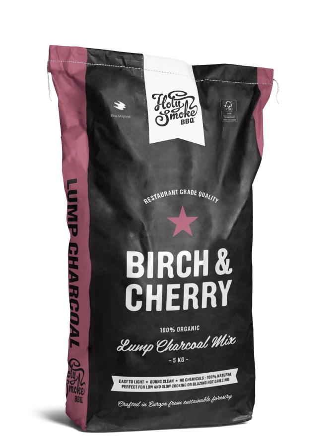 Houtskool vervaardigd uit een duurzame mix van berken- en kersenhout. Deze blend brandt gelijkmatig en langdurig, met een minimale hoeveelheid as.