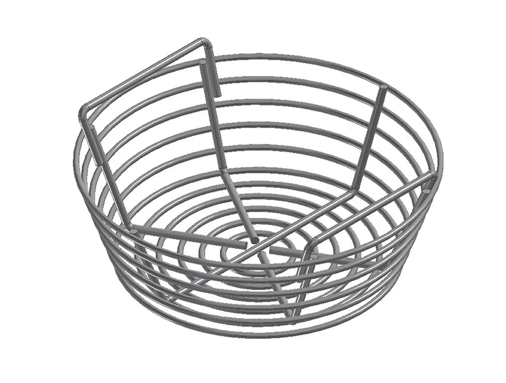 Houtskoolmand Kamado Joe Junior die geplaatst kan worden in de vuurbak van een Joe Junior. Het plaatsen van deze mand, zorgt voor een enorme verbetering in de zuurstofdoorvoer, waardoor het beheersen van de temperatuur een stuk makkelijker wordt. De gietijzeren plaat met gaten die onderin de vuurbak ligt dient verwijderd te worden.