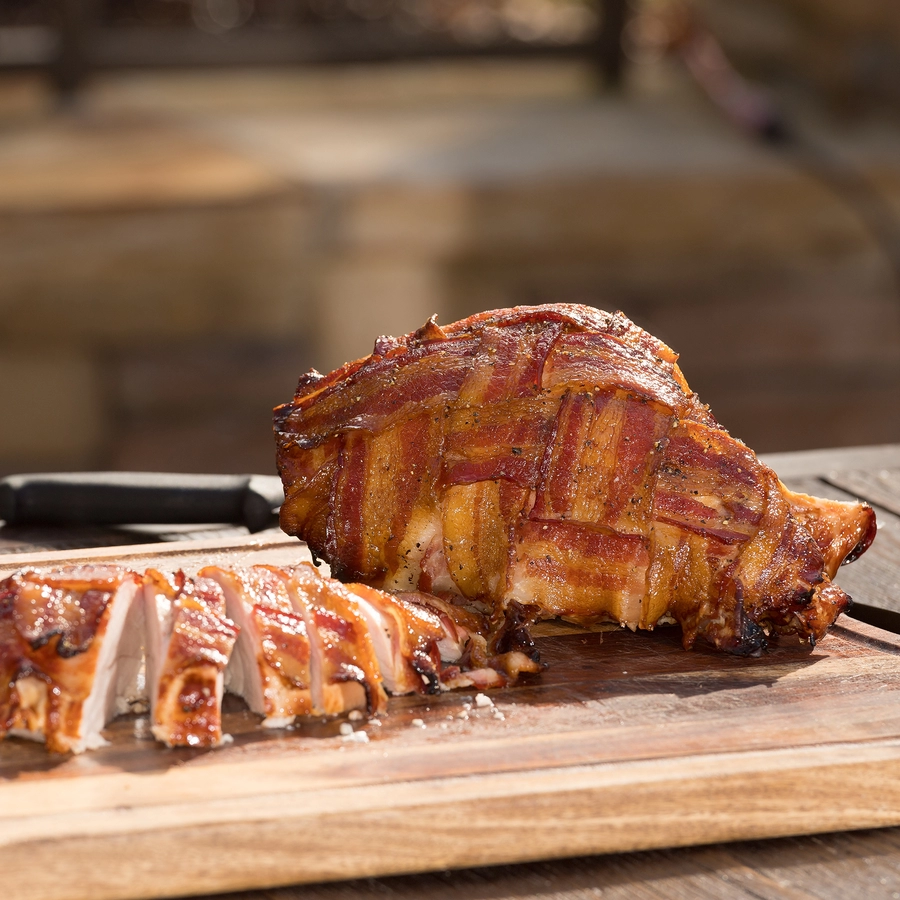Extra ruime capaciteit: tot 16 kippen, 4 kalkoenen, 8 varkensschouders of 8 ribstukken.
