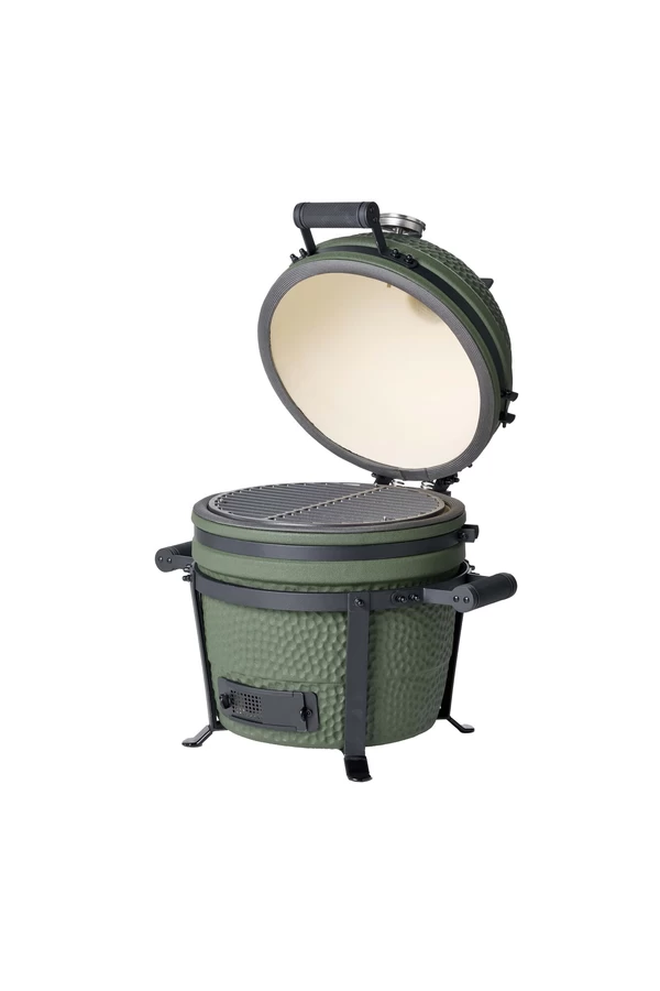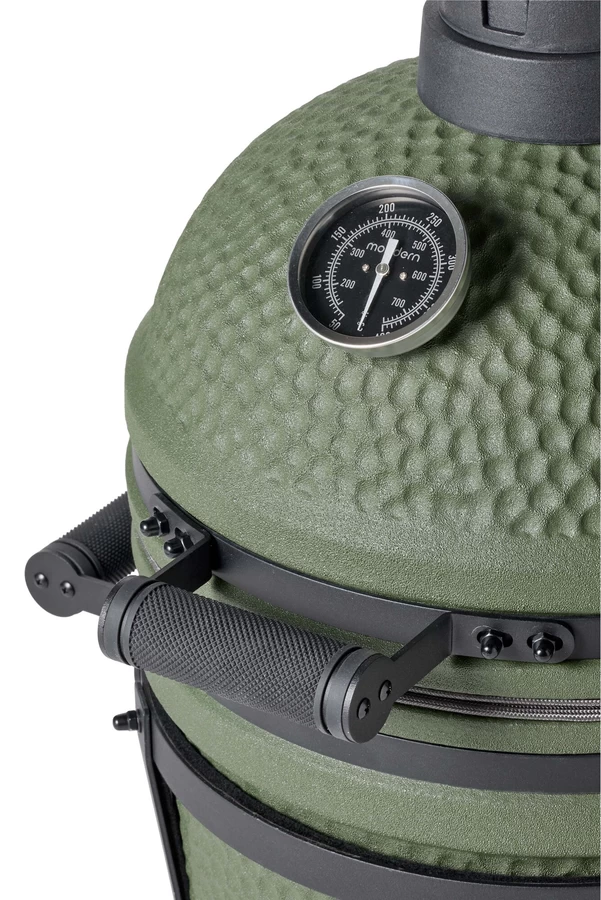 Ontdek de Moddern Compact Green: een stijlvolle compacte kamado in een fraaie matgroene uitvoering, waar kracht en design perfect in balans zijn.