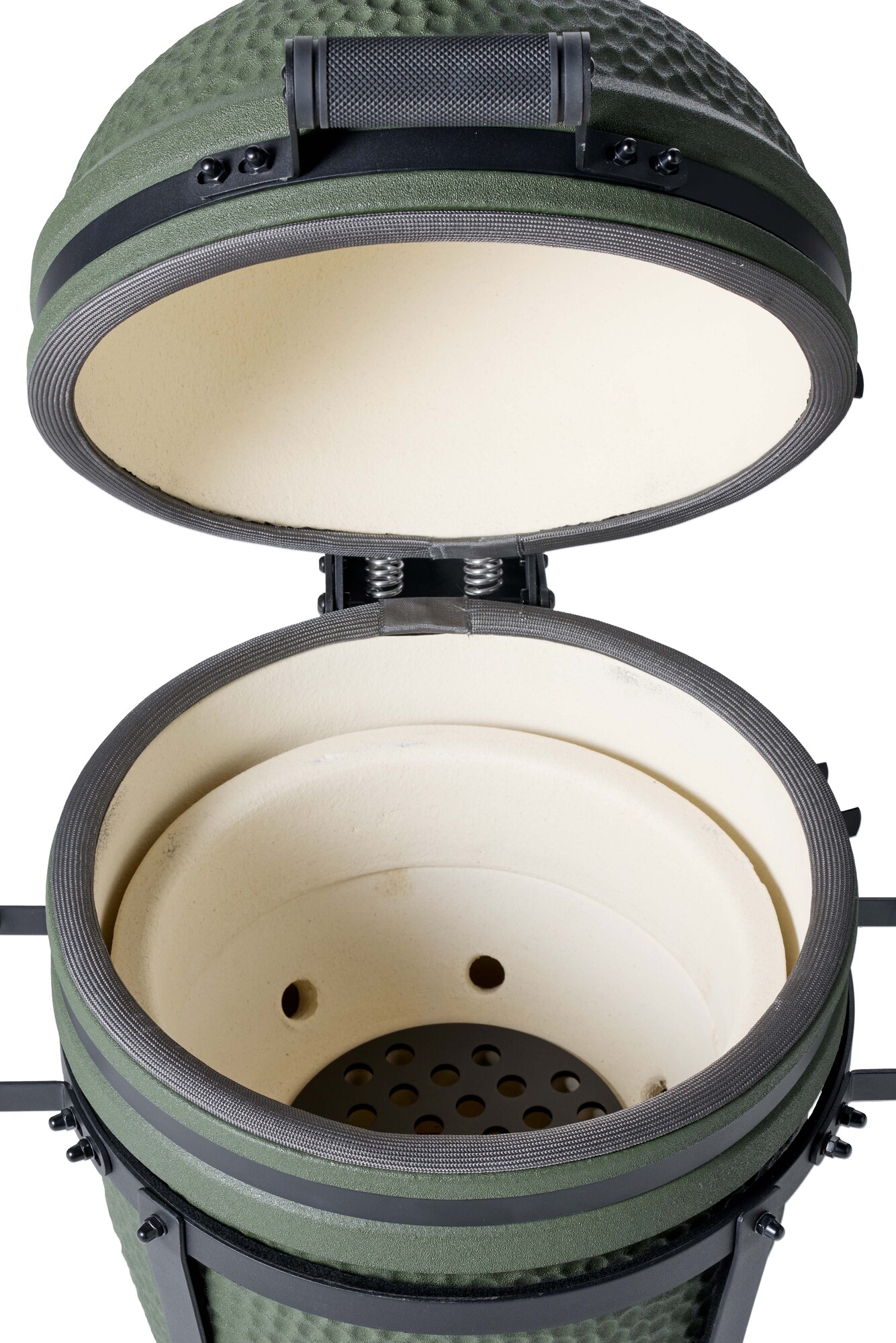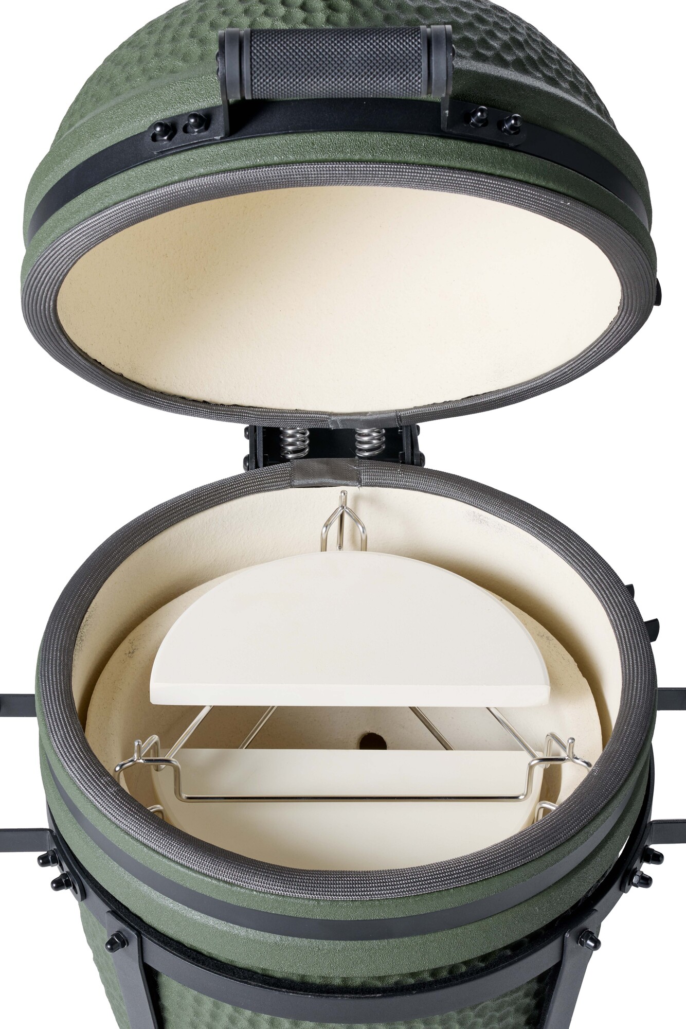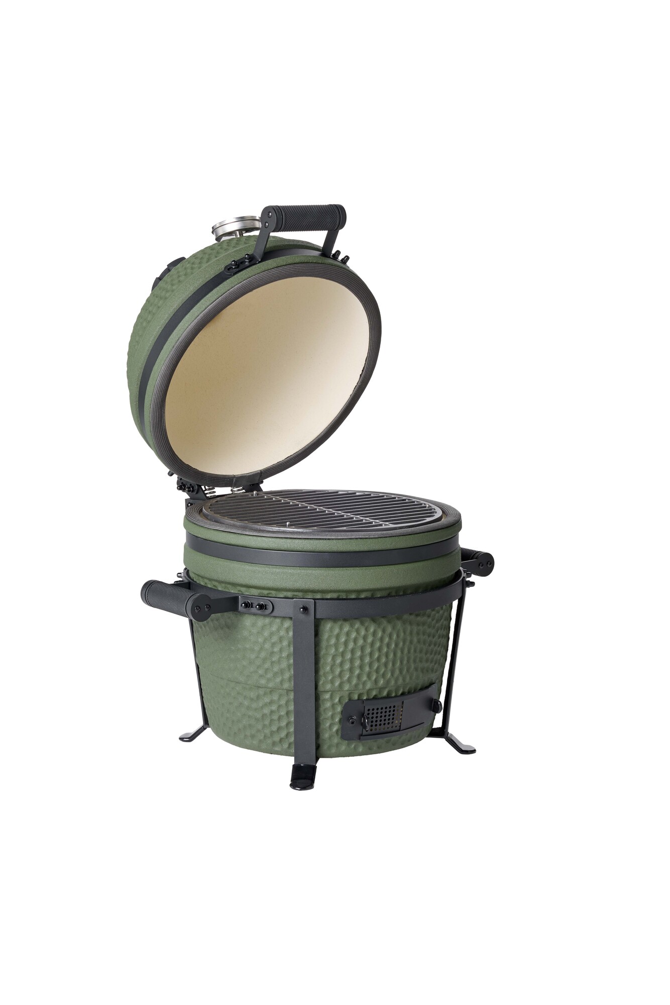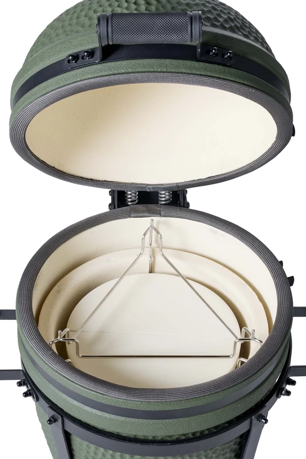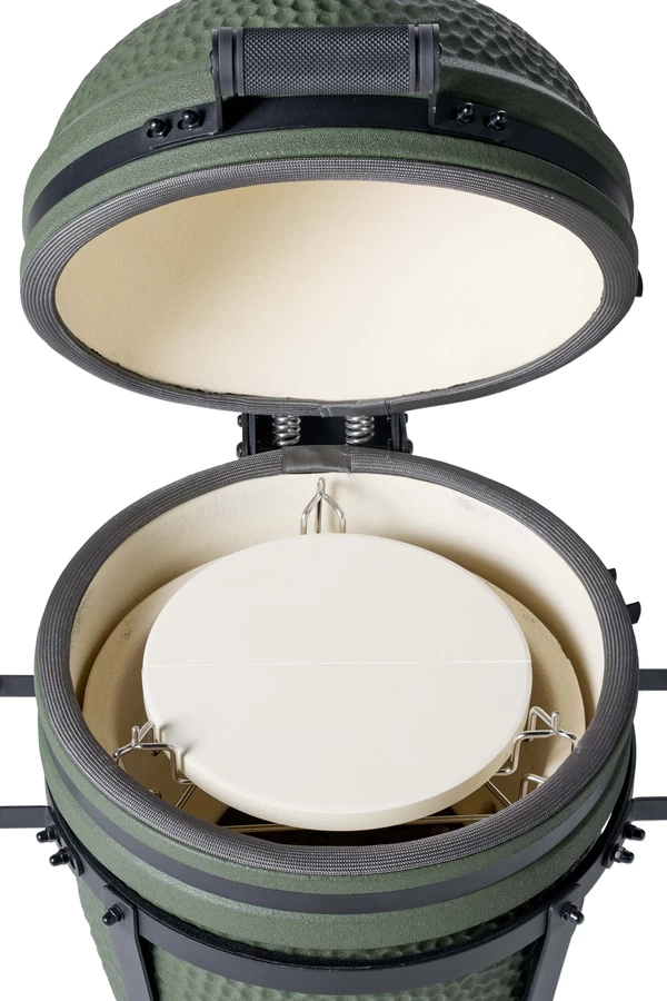 Een premium matgroene compacte, maar complete kamado.