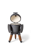 De verplaatsing is eenvoudig door de soepele wielen met rem, waardoor de kamado altijd veilig en stevig staat. De ronde aluminium zijtafels zijn inklapbaar en bieden zo extra werkruimte wanneer nodig, of juist ruimtebesparing bij het opbergen.