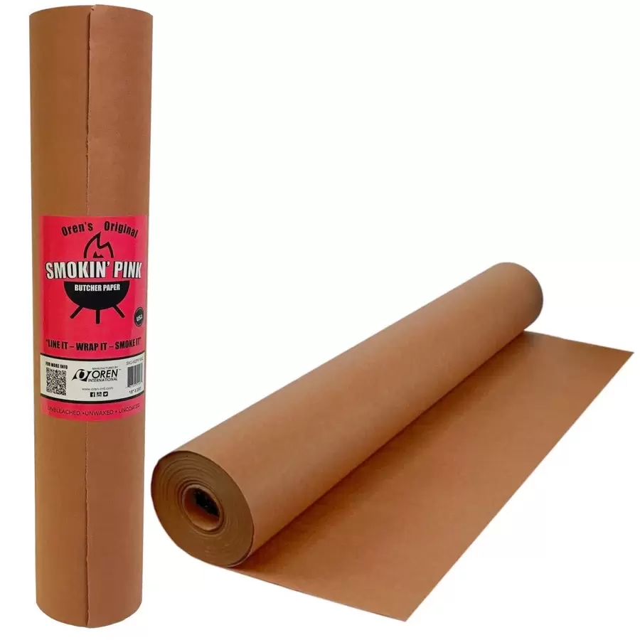 Butcher papier is een stevig kraftpapier, meestal verkrijgbaar in wit of karakteristiek roze. Het is gemaakt van ongestreken houtpulp en speciaal behandeld om vet- en vochtbestendig te zijn, zonder gebruik van schadelijke plastic- of waxcoatings. Deze unieke samenstelling maakt het veilig voor gebruik bij hoge temperaturen en zorgt ervoor dat het licht kan "ademen" tijdens het kookproces.