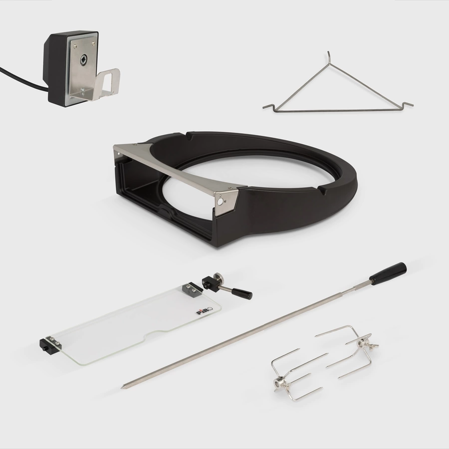 PiRO JB Edition + Pizzasteen, een rotisserie en pizza oven in één apparaat. Dit type is geschikt voor de Classic Joe, de Classic Joe ll en Classic Joe lll van Kamado Joe. Tevens is dit type geschikt voor Grizzly Grills en Bastard Large.