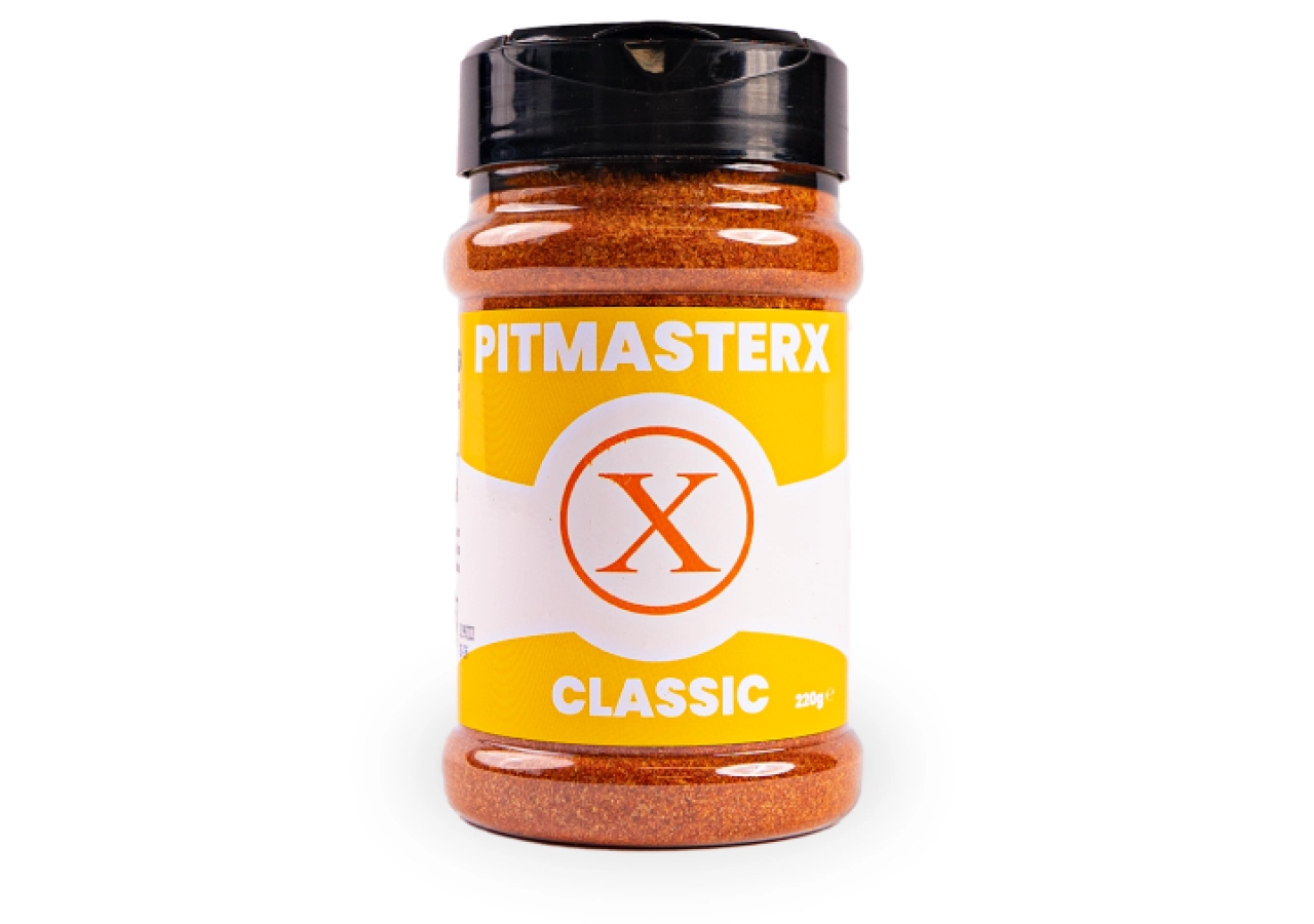 PitmasterX Classic, een klassieke en ideale kruidenmix voor alle gerechten. Kan gebruikt worden bij vrijwel alle recepten en verstrekt alle ingrediënten.