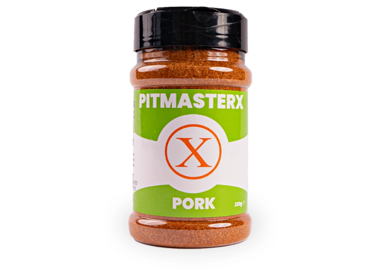 PitmasterX Pork, een rijke kruidenmix die speciaal voor varkensvlees is samengesteld. Het verrijkt de smaak van elk varkensvlees gerecht en geeft een zeer smakelijke bijt.