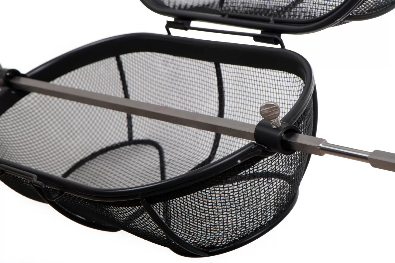 Een rotisserie of draaispit mandje voor een draaispit vanaf 20 inch. De mand past op de meeste rotisseries/draaispitten en wordt met moeren op het spit vastgezet.