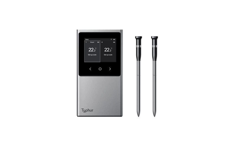 Perfectie begint bij precisie. De Typhur Sync tilt temperatuurmeting naar een hoger niveau met twee geavanceerde sondes, elk voorzien van zes sensoren, en een stijlvol basisstation met helder 2,4‑inch display, ingebouwde Wi‑Fi en Bluetooth 5.4. Ontworpen voor chefs, grillmasters en culinaire professionals die alleen het beste willen.