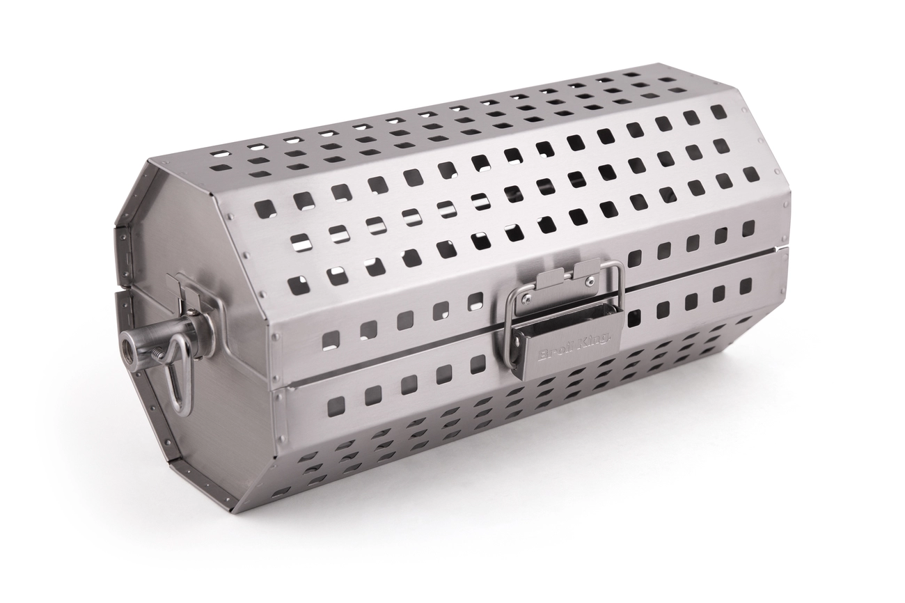 Een mand voor het draaispit (rotisserie) van Broil King. Past op de meeste draaispitten, doordat de mand met twee vleugelmoeren kan worden worden vastgezet.
