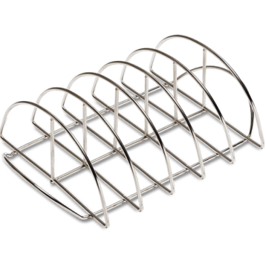 Ribrek van Kamado Joe waarmee meerdere ribs, maar ook bijvoorbeeld vis of kippebouten, tegelijkertijd in passen om te plaatsen op een grillrooster. De hitte komt hiermee langs beide kanten wat een betere “bast” maakt. Gebruik het rek rechtstreeks op het rooster, met of zonder hitteschild. Doordat het ribrek van RVS is, mag deze in de vaatwasser.