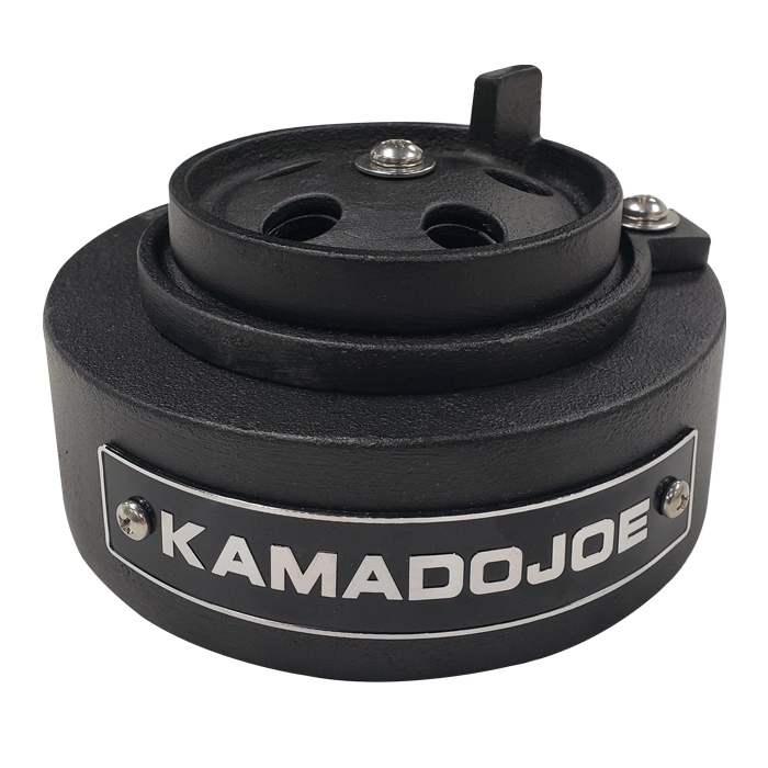Deze gietijzeren damper oftewel topvent zit standaard op de Classic Joe l en Big Joe l van Kamado Joe gemonteerd. Dit type is gemaakt van gietijzer. Een topvent wordt gebruikt om langzaam te garen op lagere temperaturen, en tijdens het roken. Bij hoge temperaturen adviseren wij de topvent te verwijderen. Een topvent verliest bij hoge temperaturen de functie en dit type topvent wordt daar bovendien niet fraaier van.