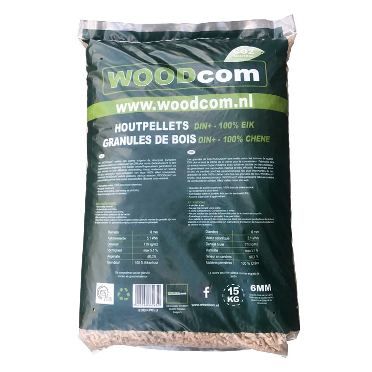 | 15 kg Eiken pellets van 6mm doorsnede. |
