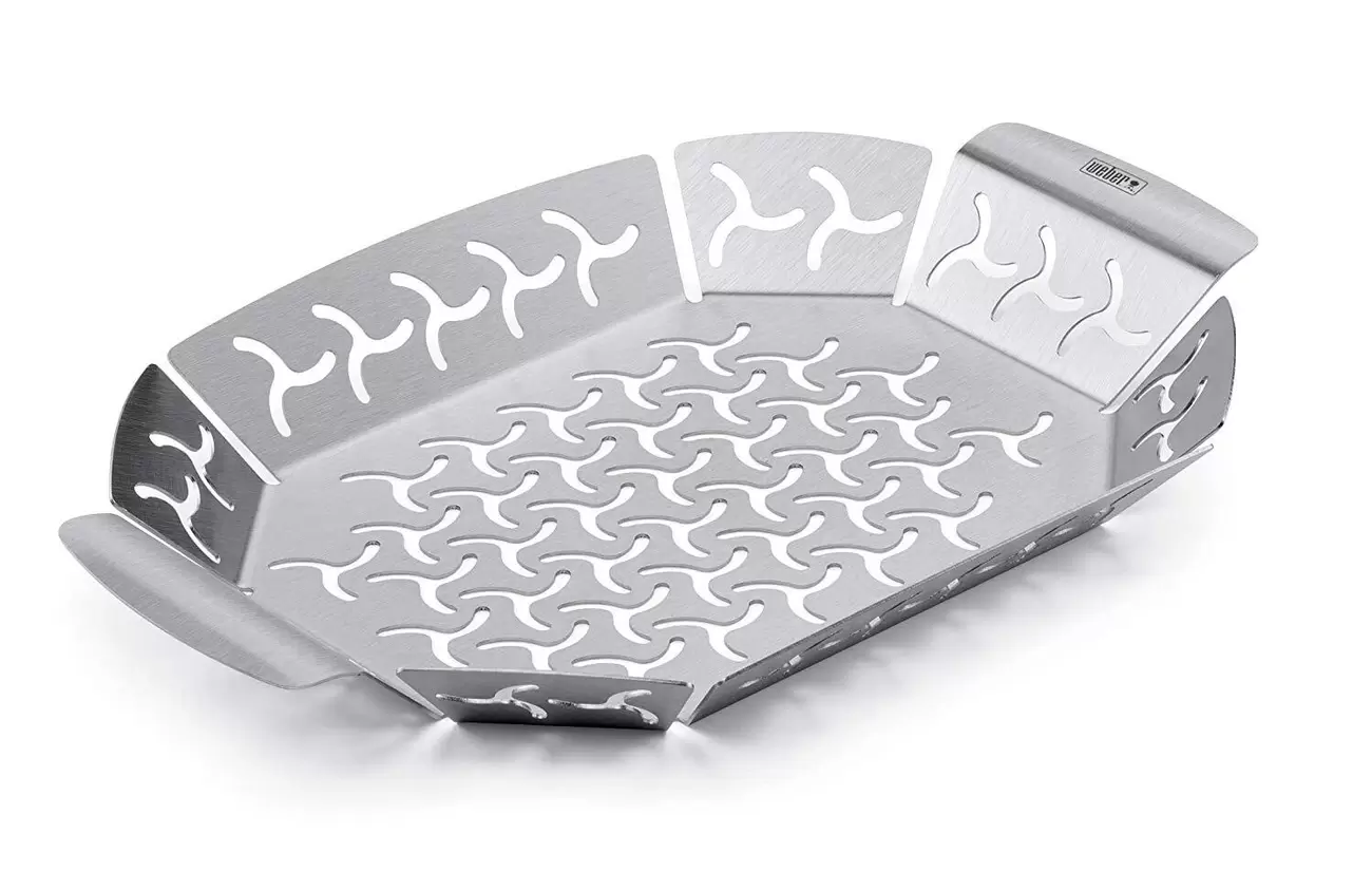 Grillmand RVS 36x25x3cm, ideaal voor groente, garnalen, fruit of andere producten die door een rooster heen kunnen vallen.