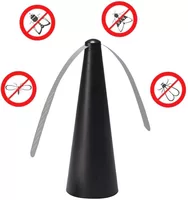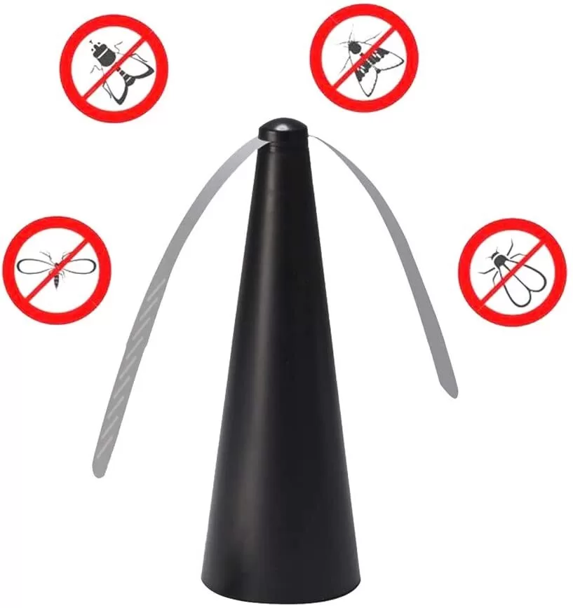 Vliegenverjager die door de ronddraaiende propellor alle insecten weghoudt op de locatie waar deze vliegenverjager wordt neergezet. Plaats de Vliegenverjager op de eettafel en je hebt geen last meer van vliegen. Absoluut veilig in gebruik, de propellor is zeer licht en kan een hand niet beschadigen. De vliegenverjager werkt op 2 aa batterijen.
