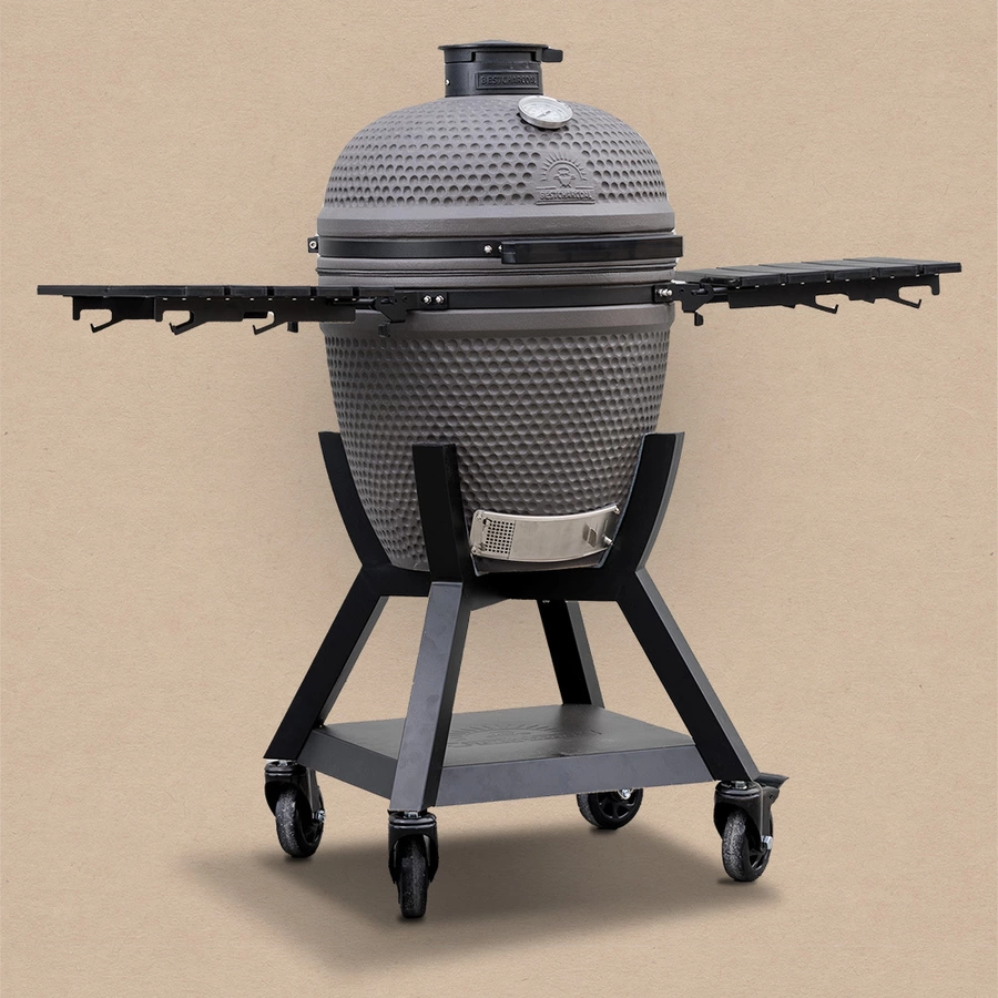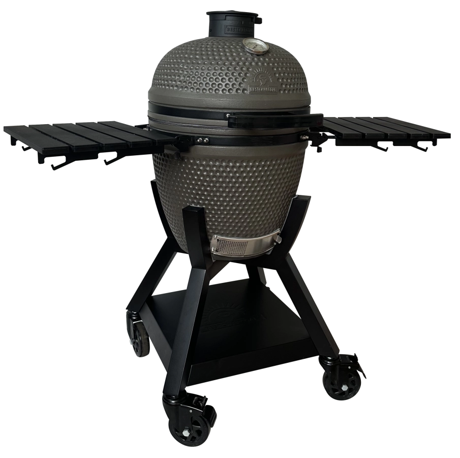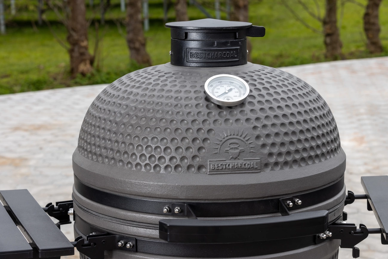 De Bestcharcoal Kamado is een keramische barbecue van hoge kwaliteit met een stoere uitstraling. Standaard wordt hij geleverd met veel accessoires, zoals een multilevel grillsysteem, een houtskoolmand met scheidingswand en een aslade. Daarnaast worden er ook keramische voetjes bij geleverd om de kamado in een meubel te plaatsen.