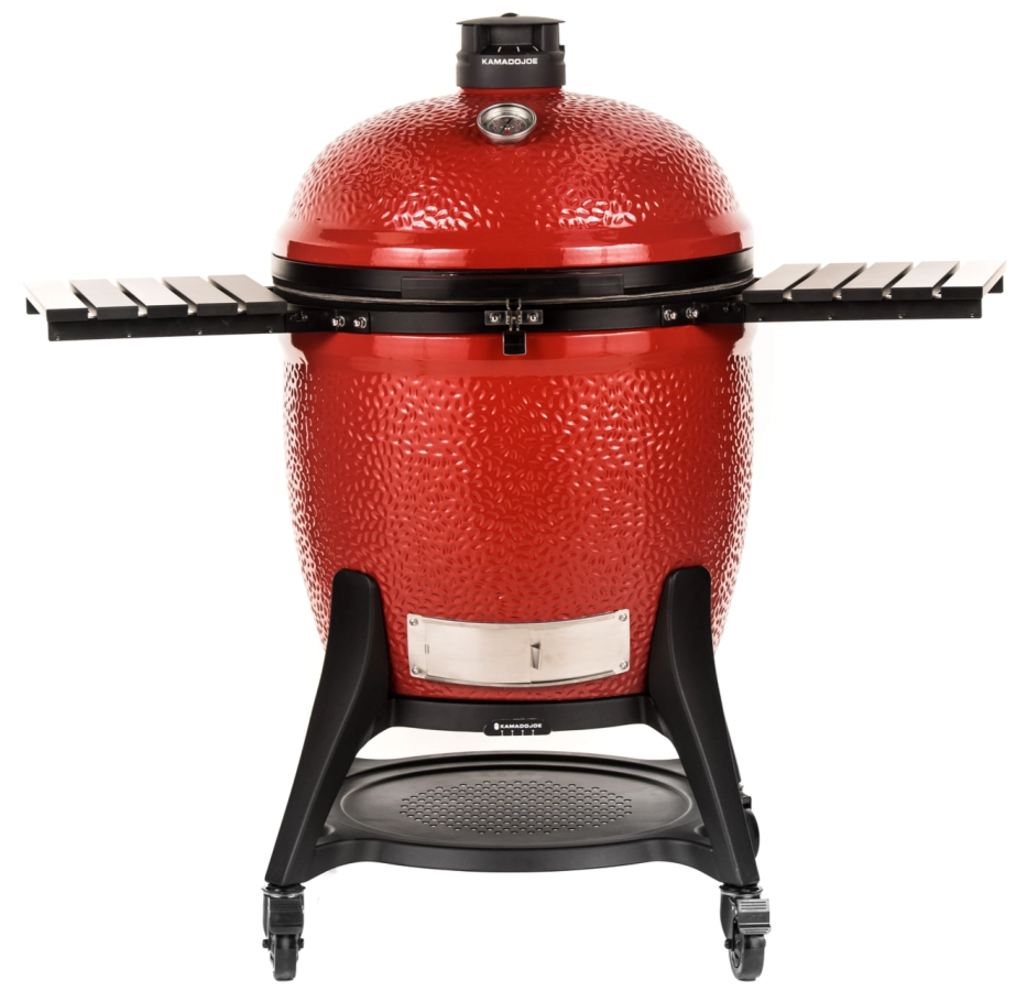 Combideal! Big Joe III inclusief een JoeTisserie draaispit. De Big Joe is met 64cm grill diameter de grootste kamado van Kamado Joe en de Big Joe lll is de meest luxe en wordt geleverd met onderstel, geremde wielen en metalen zijtafels.