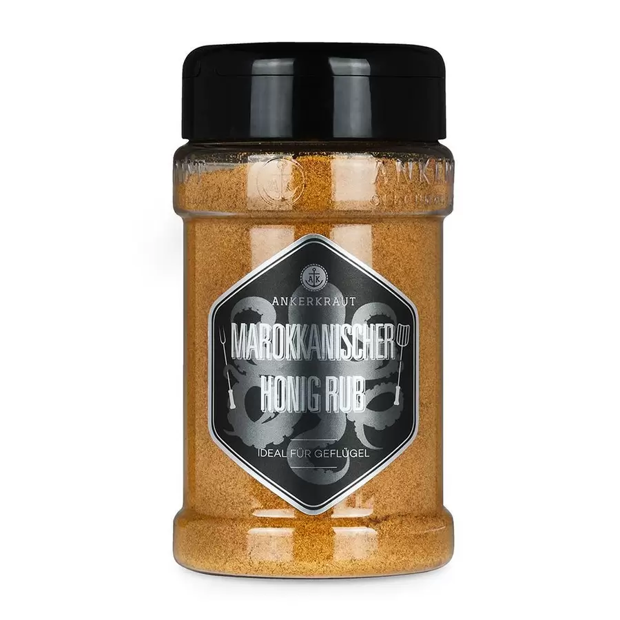 Bij het openen van deze Marokkaanse Honing BBQ-Rub pot komt de geur van oosterse kruiden je direct tegemoet en sta je voor je gevoel meteen op de kruidenmarkt in Marrakech. Deze rub is bijzonder geschikt voor bijvoorbeeld gevogelte en 1-2 eetlepels per 250 g vlees is echt voldoende. Traditioneel bereid je alles in een tajine, de Marokkaanse braadpan, maar grillen is zeker net zo lekker.